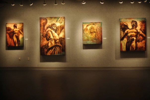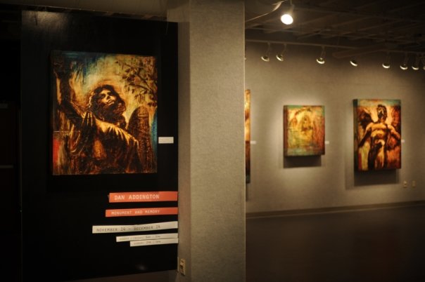 "Dark" and "angel" aren't words that seem well-suited to each other, but in Dan Addington's show, "Monument and Memory," on display at The Gallery at John Brown University, it's a match made in, well, heaven.