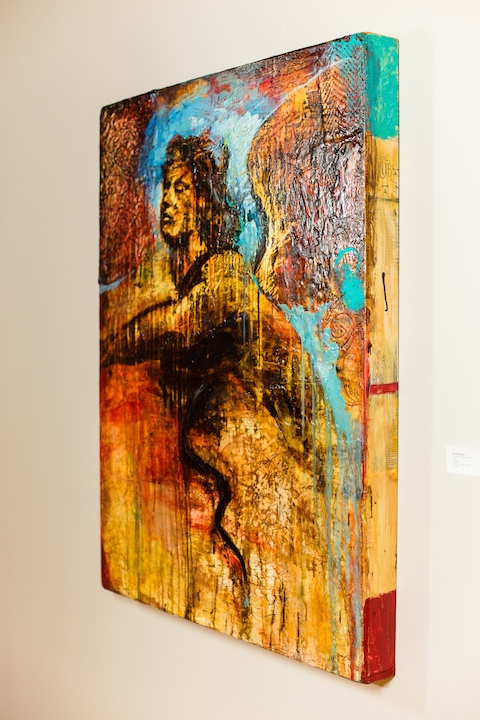 "Loosen Our Hair Over You", 50" x 38" x 4" ,oil, wax, tar, on wood, $7400