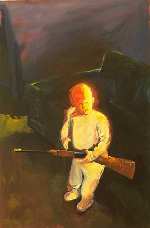 Ten years ago, when an untitled painting of a gun-toting toddler won the top purchase award in the Evansville Museum's Mid-States Art Exhibition, people found it's subject matter disturbing in an enigmatic sort of way.