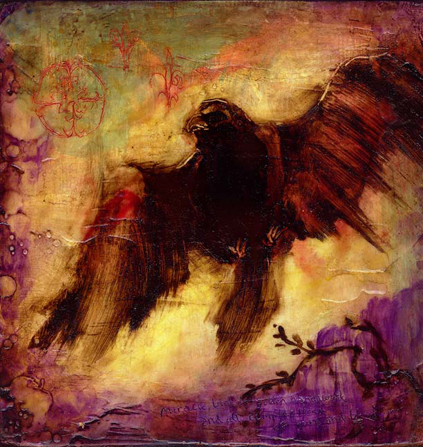 "Weight of Hearts and Wings" 9"x 9"x 2"